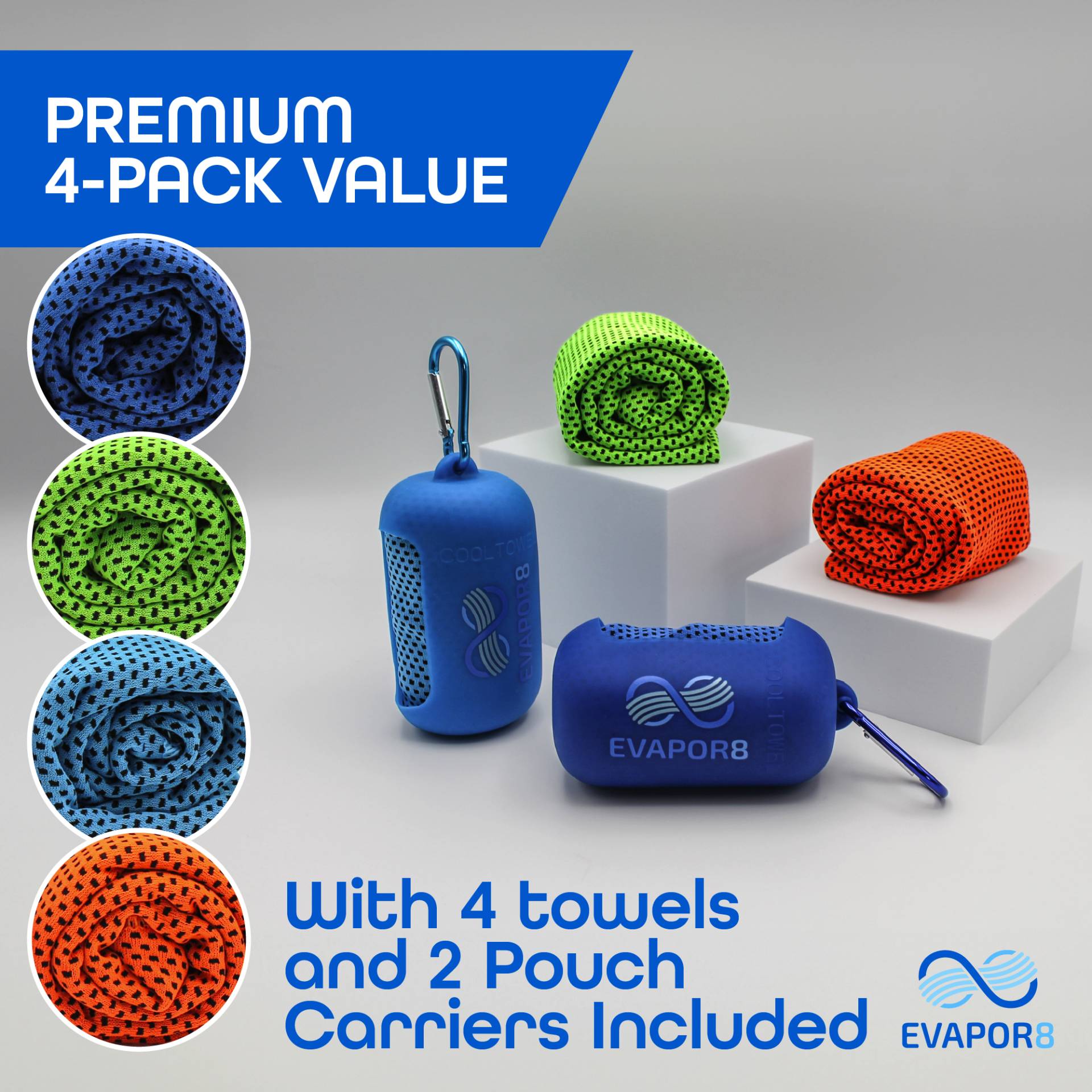 - Every Multi-Colored Pack Comes with Four Towels: Mix and match your favorite workout gear to one of the four brightly-colored Evapor8 Towels you get in every box.